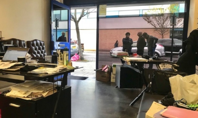 Suspended ceiling Concealed fluorescent lighting Electric shutter Modern aluminium shop front Laminate wood flooring